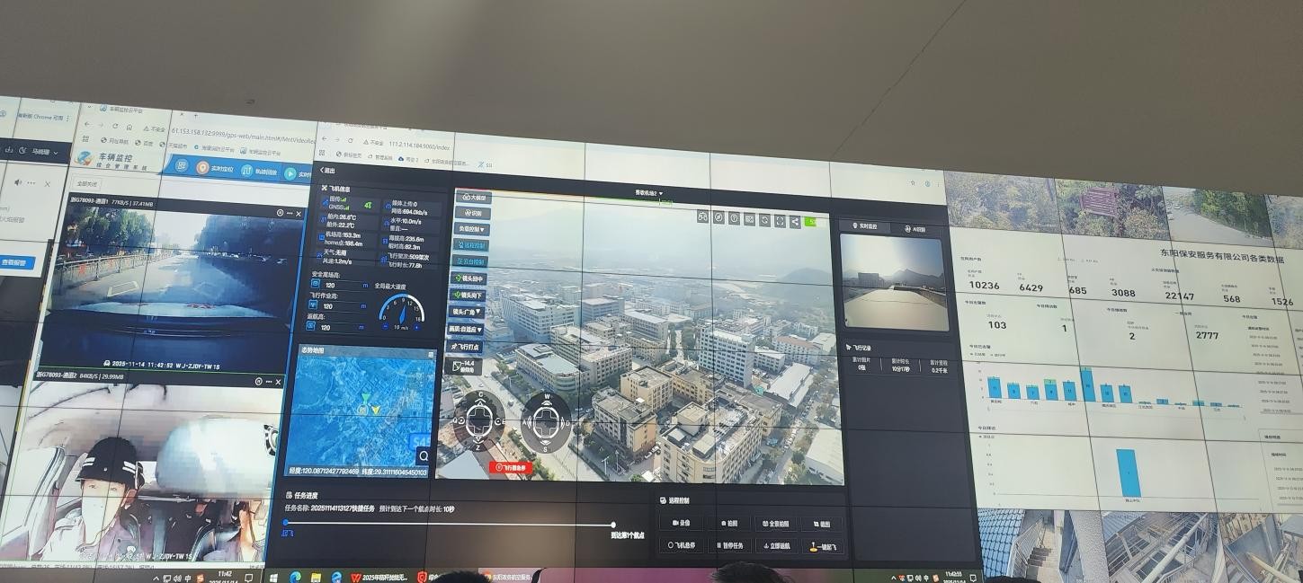 在卢伟锋总经理的引领与详细介绍下,团队重点观摩了东阳市保安服务有限公司着力构建的“空地一体化联动消防系统”,此次展示的核心是展示了传统地面消防力量与现代无人机技术进行深度融合与实战化应用演练。现场,多型号消防无人机依次升空,动态演示了在高空火情侦察、精准灭火、应急消防物资快速投送等多个关键场景下的卓越性能。无人机凭借其响应迅速、视角独特、不受地面障碍限制等优势,在模拟的复杂救援环境中展现出提升应急响应效率、增强救援安全性、拓展作业维度的巨大潜力,生动诠释了“科技强安”的先进理念。