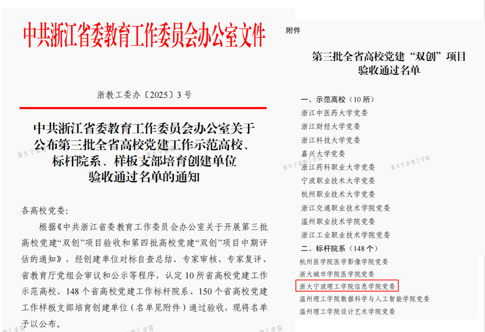 此次标杆院系建设验收顺利通过,是学院党建工作的里程碑,更是新征程的起点。学院党委将进一步巩固创建成果,持续完善党建与业务融合机制,切实提升党建与业务相互渗透、相互促进的深度和广度,在“十五五”规划新征程中,锚定发展蓝图,以高质量党建引领学科创新、人才培养和社会服务,为学校“港城特色、浙大底色、理工本色”的一流创新性应用型大学建设贡献信息力量!