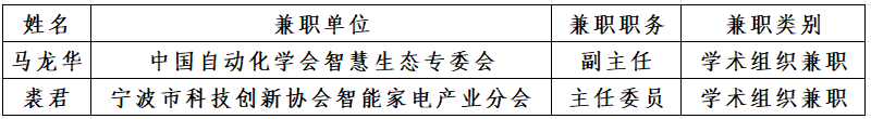 根据《浙大宁波理工学院教职工校外兼职管理暂行办法》(浙大宁理人〔2021〕235号),现对马龙华、裘君2位教师申请校外兼职情况予以公示,公示期:2024年12月19日-2024年12月21日。