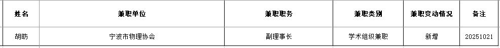 根据《浙大宁波理工学院教职工校外兼职管理暂行办法》(浙大宁理人〔2021〕235号),现对胡昉老师申请校外兼职情况予以公示,公示期自2025年10月21日至10月23日止。