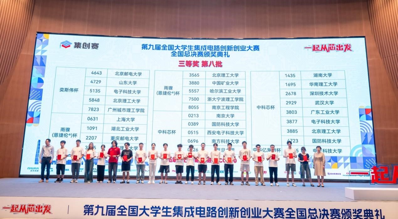 2025年8月24日,第九届全国大学生集成电路创新创业大赛在上海海洋大学圆满落幕,我校信息科学与工程学院张国强老师指导,叶振宁、张晨轩、章沈颖三位本科一年级学生组成的团队表现突出,以华东分赛区一等奖的佳绩晋级总决赛并最终荣获全国三等奖,创下我校参与该赛事以来的历史最佳成绩。